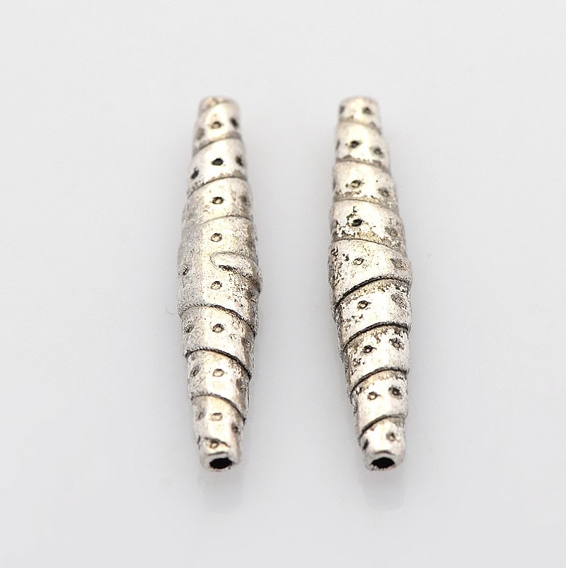 The Long Oval Silver Metal Pipe Bead adds a stylish and textured look to handmade jewellery, making it an easy way to give your designs a bold, handcrafted feel. Its antique silver finish shines softly, showing off the spiral detailing that wraps around the bead. This shape works beautifully in necklaces, earrings and bracelets, especially when paired with gemstones, wooden beads or matte seed beads. Because it is lightweight yet sturdy, it sits nicely in both delicate designs and stronger statement pieces. Many makers use these beads to add length and balance to their patterns, helping each piece look more refined and thoughtfully shaped.